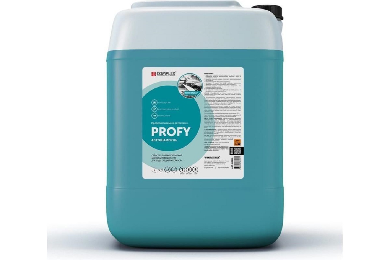 Автошампунь Complex Profy — профессиональное концентрированное средство для бесконтактной мойки автомобиля, созданное для эффективной очистки даже при сильных загрязнениях. Формула с повышенной моющей способностью образует густую активную пену, которая глубоко проникает в структуру загрязнений и быстро растворяет дорожную грязь, масляные отложения и следы насекомых. Средство эффективно удаляет даже засохшие загрязнения, возвращая кузову чистоту без разводов и налета. Автошампунь оптимально работает в воде средней жесткости, обеспечивая стабильный результат как при регулярной мойке, так и при интенсивной эксплуатации. Состав бережно воздействует на лакокрасочное покрытие, а также безопасен для пластиковых и резиновых элементов автомобиля. Дополнительно содержит антикоррозионные компоненты, которые помогают защитить металлические поверхности от воздействия влаги и агрессивной среды. Высокая концентрация обеспечивает экономичный расход, а уровень биологического разложения более 97% делает средство более экол