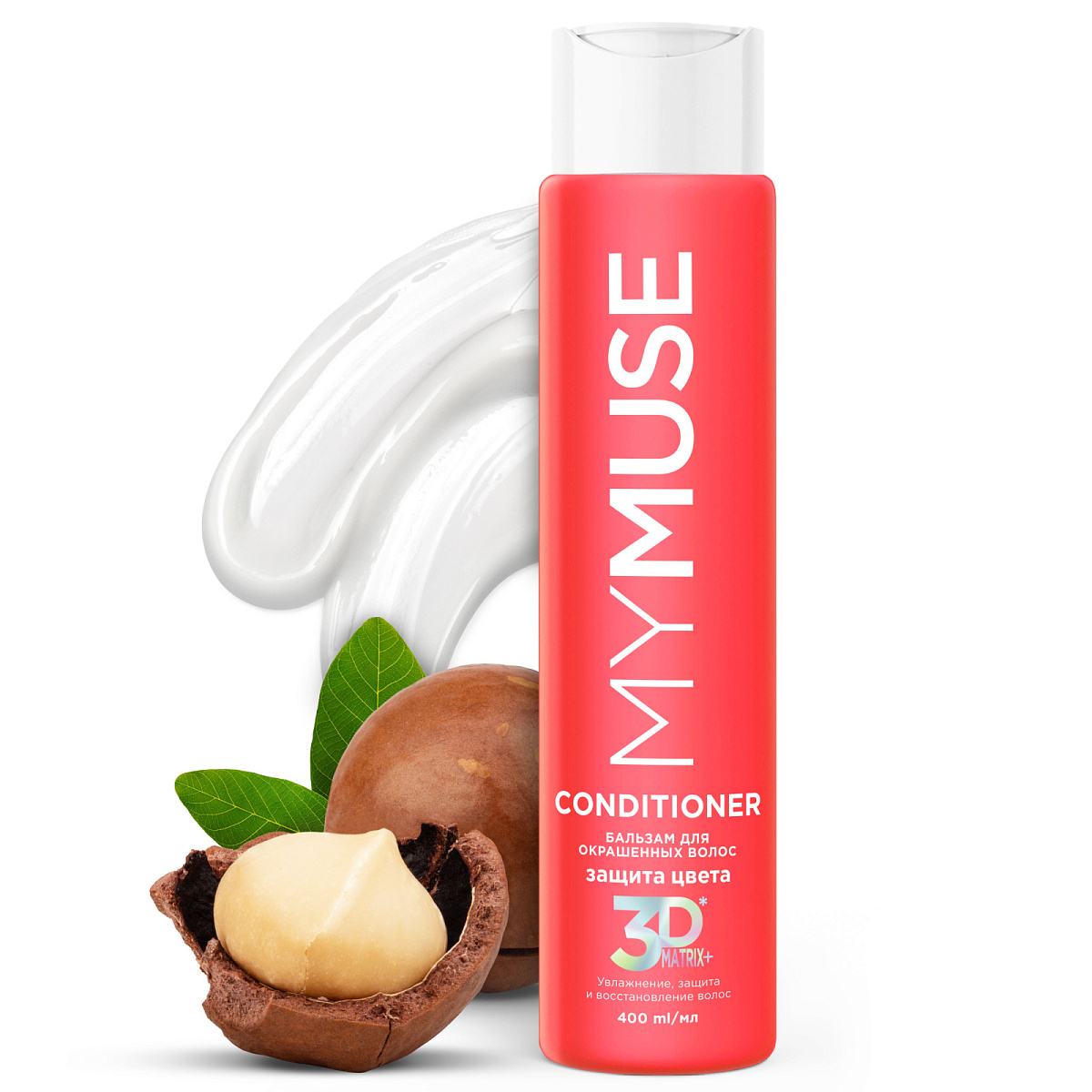 Бальзам для окрашенных волос MY MUSE "Защита цвета и увлажнение" 3D Matrix Plus, 400 мл. Технология 3D MATRIX+ обволакивает, увлажняет, защищает и восстанавливает волосы по всей длине, благодаря активным натуральным компонентам из протеинов сои и семян рожкового дерева. Протеины РИСА питают волосы микроэлементами и насыщают их влагой по всей структуре волоса. Образуют защитную пленку, препятствуют вымыванию цвета. Масло макадамии насыщает волосы влагой, оживляет их. Предотвращает возникновение тусклости, придает волосам здоровый блеск. После применения волосы становятся мягкими, приятными на ощупь.