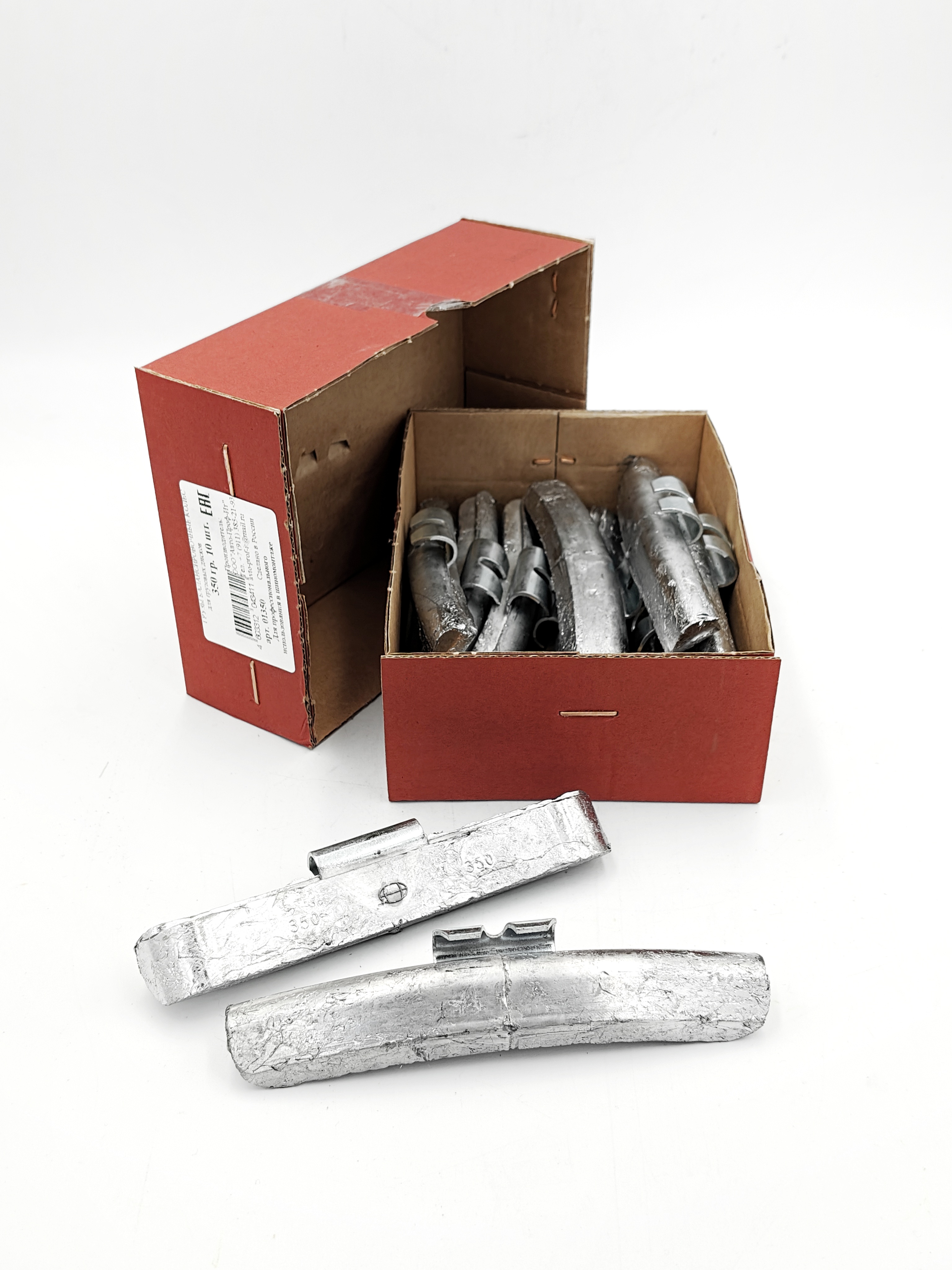 Грузик балансировочный грузовой. Балансировочные грузики для грузовых бескамерных колёс предназначены для устранения дисбаланса колёс у грузовых автомобилей, придания равновесия центробежной силе, снижения нагрузки на подшипники и амортизаторы, что в свою очередь предупреждает преждевременный износ резиновых шин и положительно сказывается на управляемости в целом. При помощи крепёжной скобы, грузики легко подвешиваются к дискам или ободу, благодаря пружинному механизму они плотно прилегают к поверхности. Грузики выполнены из металла с антикоррозийным покрытием. Используются грузики одноразово, после очередной балансировки их необходимо заменить на новые.