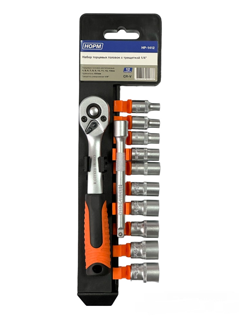 HP-1412 Набор торцевых головок с трещоткой 1/4" (12 предметов)