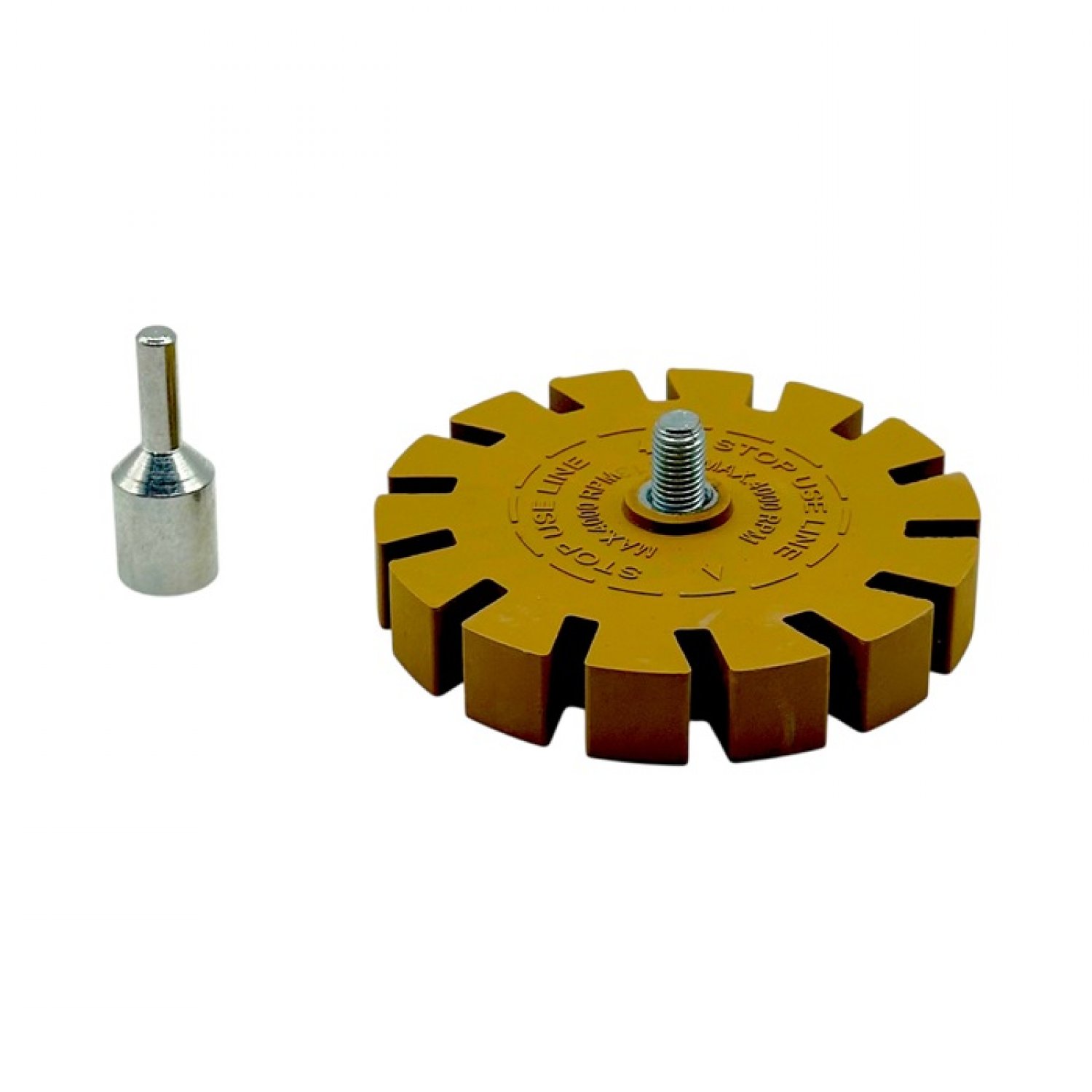 Диск зачистной резиновый — безупречная очистка колесных дисков. • Надежный помощник профессионалов для идеального удаления остатков клея после демонтажа балансировочных грузов. • Эффективная работа с любыми следами клея, включая следы от скотча, наклеек и декоративных покрытий (винил). • Компактность и эргономичность конструкции обеспечивают удобство эксплуатации даже в труднодоступных местах. • Максимальное число оборотов до 4000 об/мин позволяет быстро справляться с загрязнениями любого уровня сложности. • Адаптер в комплекте обеспечивает совместимость практически со всеми типами шлифмашин, дрелей используемых в автосервисах. С диском зачистным резиновым удаление любых загрязнений станет быстрым и качественным процессом, который сэкономит время и повысит качество обслуживания клиентов вашего шиномонтажа.