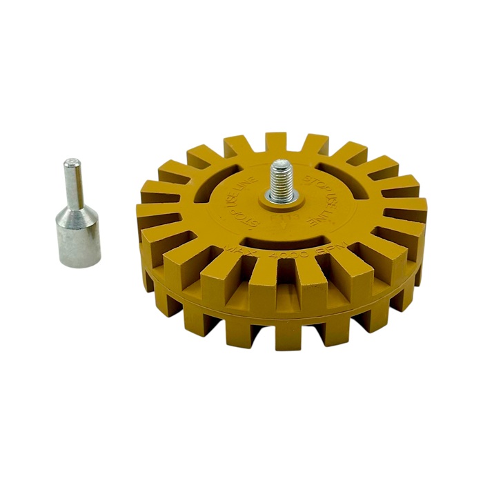 Диск зачистной резиновый — безупречная очистка колесных дисков. • Надежный помощник профессионалов для идеального удаления остатков клея после демонтажа балансировочных грузов. • Эффективная работа с любыми следами клея, включая следы от скотча, наклеек и декоративных покрытий (винил). • Компактность и эргономичность конструкции обеспечивают удобство эксплуатации даже в труднодоступных местах. • Максимальное число оборотов до 4000 об/мин позволяет быстро справляться с загрязнениями любого уровня сложности. • Адаптер в комплекте обеспечивает совместимость практически со всеми типами шлифмашин, дрелей используемых в автосервисах. С диском зачистным резиновым удаление любых загрязнений станет быстрым и качественным процессом, который сэкономит время и повысит качество обслуживания клиентов вашего шиномонтажа.