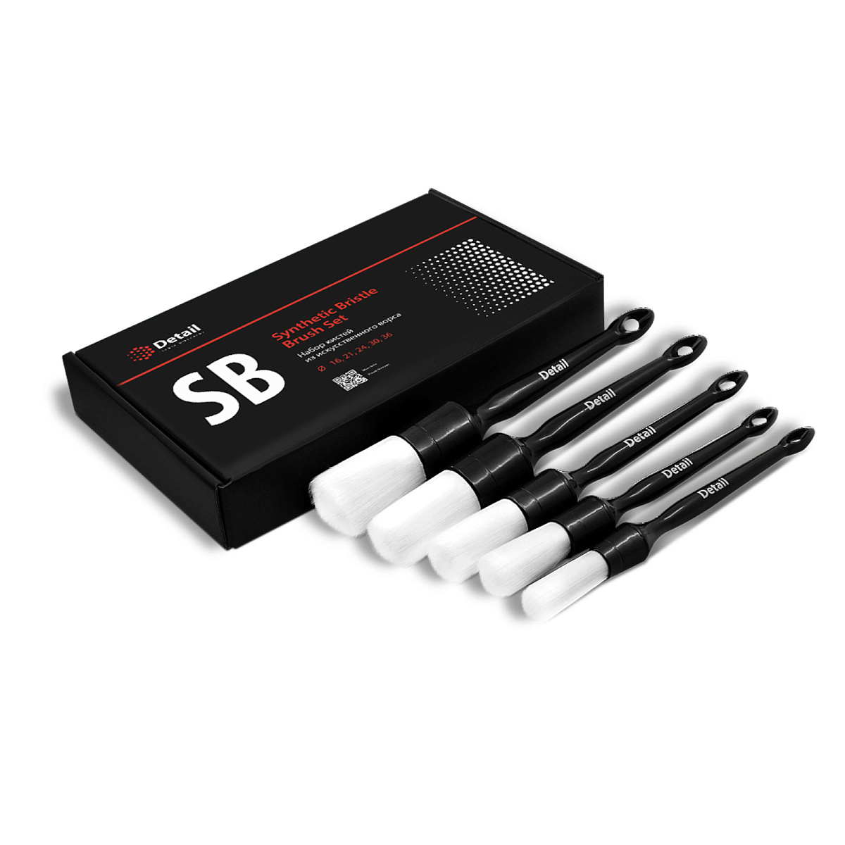 Комплект пластиковых кистей с искусственным ворсом Detail (DT-0254). Кисти предназначены для деликатной очистки поверхностей в труднодоступных местах. Набор включает в себя кисти №10, №12, №14, №18, №20.
