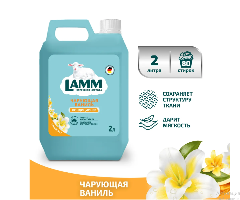 Кондиционер-концентрат для белья Lamm Чарующая ваниль. Благодаря специальной формуле концентрированный кондиционер для белья LAMM Чарующая ваниль заботится о ваших вещах и отлично подходит для регулярного ухода: - придает мягкость и приятный аромат ванили; - сохраняет структуру ткани, защищая волокна от изнашивания; - облегчает глажку белья после стирки; - обладает антистатическим эффектом; - экономичный расход благодаря концентрированной формуле.