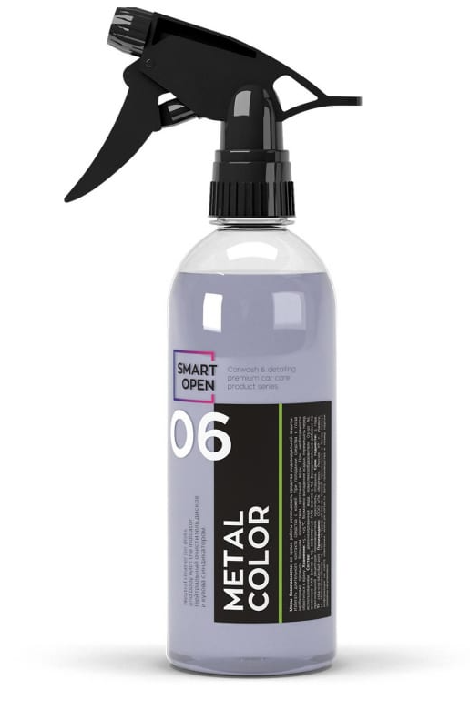 06 SMART METAL COLOR 150605 - средство для очистки любых типов дисков, включая диски из полированного, анодированного алюминия, лакированные, хромированные. Также состав подходит для очищения лакокрасочной поверхности кузова от мельчайших вкраплений металла. Частицы металла попадают на поверхность в результате истирания тормозных дисков и колодок. Во время полировки такие частицы приводят к значительным повреждениям лакокрасочного слоя. Нейтральный уровень pH сводит к нулю негативное воздействие на обрабатываемые поверхности. Содержит индикатор эффективности. Интенсивность окраски указывает на степень отделения металлических вкраплений. В отличие от стандартных очистителей состав способен удалять застарелые оксидные пленки металлов. Повышает уровень блеска очищенной поверхности. Преимущества : - Нейтральный уровень рН сводит к нулю негативное воздействие на обрабатываемые поверхности. - Содержит индикатор эффективности, который показывает степень очистки поверхности.