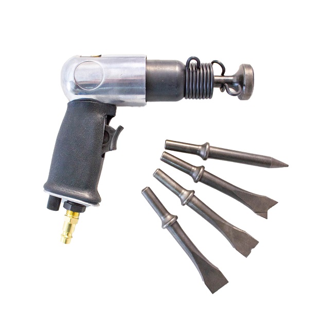 Пневматический молоток NORM HP-9018 обеспечивает качественную установку кордовых заплат, пластырей и грибков на ремонтируемую поверхность камеры или шины. Молоток обладает удобной рукояткой, зубила в комплекте. Изделие работает благодаря компрессору, который через шланг подает сжатый воздух в инструмент и приводит в действие ударный механизм. Технические характеристики NORM HP-9018: Входное воздушное отверстие 1/4" (13 мм); Вес 1,12 кг; Длина зубила 150мм; Диаметр поршня 19,05 мм; Материал корпуса Металл; Расход воздуха 110 л/мин; Рекомендуемый шланг 3/8" (10 мм); Рабочее давление 6,2 bar; Сила удара 5,5 Дж; Тип хвостовика Цилиндрический / Шестигранный; Уровень шума 85 дБА; Ход поршня 45мм; Частота ударов 4500 уд/мин.