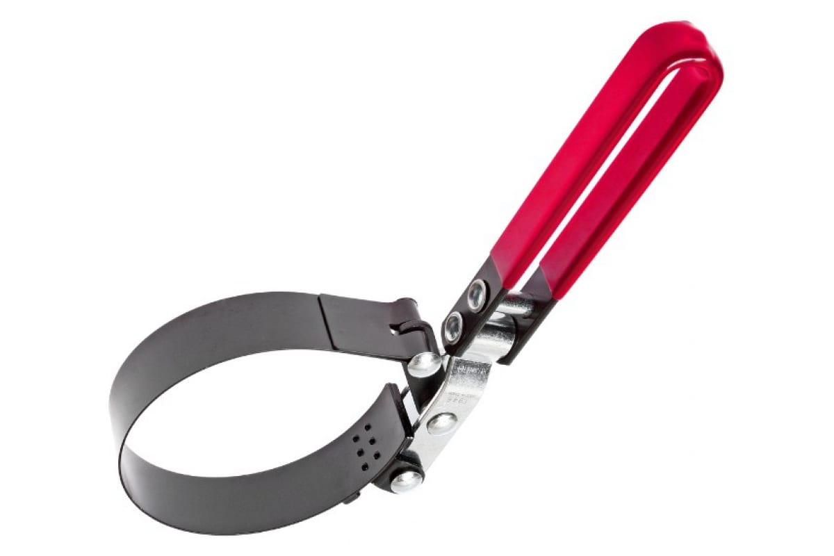 Предназначен для проведения работ по замене масляного фильтра. Основан на ленточной технологии. Инструмент выполнен из высокопрочной стали, ручки - виниловые. Оснащён поворачивающейся ручкой на 180°, что позволяет проводить снятие фильтра в труднодоступных местах. Размеры: 73 – 85 мм.