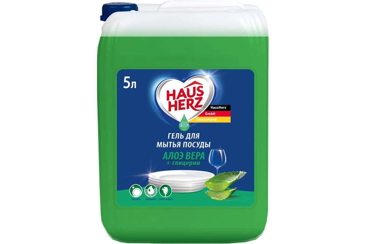 Средство для мытья посуды HausHerz глицерин и алоэ вера, 5л
