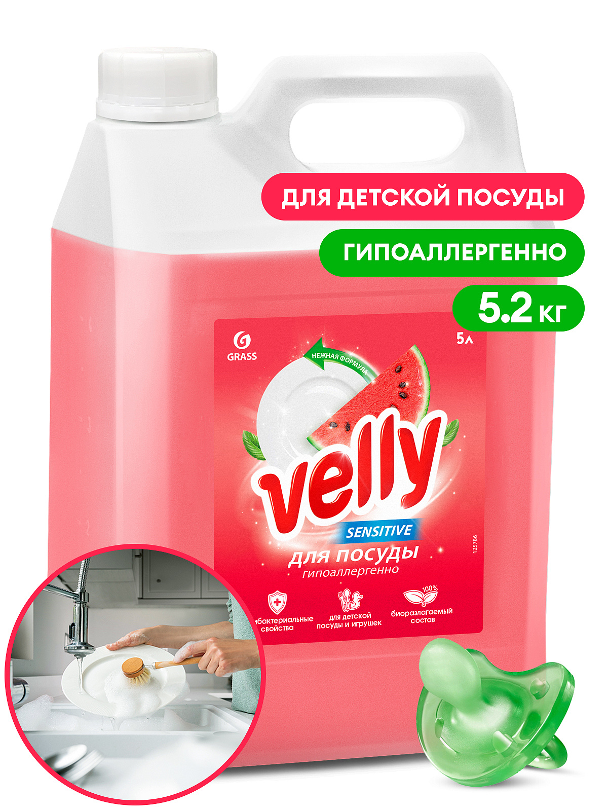 Средство для мытья посуды «Velly Sensitive» арбуз (канистра 5,2 кг)GRASS