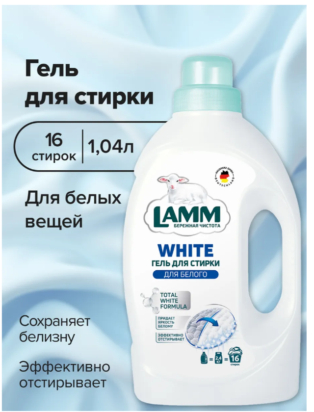 Бесфосфатный гель для стирки LAMM Для белого эффективно и бережно отстирывает белые и светлые изделия из хлопчатобумажных, льняных и синтетических тканей, а также тканей из смешанных волокон в стиральных машинах любого типа и при ручной стирке. Благодаря особой TOTAL WHITE формуле гель для стирки Ламм Для белого способствует глубокому гигиеническому очищению ткани. Гель не только эффективно удаляет широкий спектр многослойных пятен, включая масляные, жирные, липкие, белковые и крахмальные пятна, но и устраняет серость и желтые пятна от следов пота, нейтрализует неприятные запахи и не оставляет разводов на одежде. Оптические отбеливатели в составе восстанавливают яркость белого и дарят ослепительную белизну. Средство также ухаживает за тканями, благодаря чему одежда и белье становятся не только чистыми, но и приятными на ощупь. Не предназначен для стирки изделий из шерсти и натурального шелка. Преимущества продукта: • Придаёт яркость белому; • Устраняет серость и желтые пятна от следов пота; • Устраняет неп