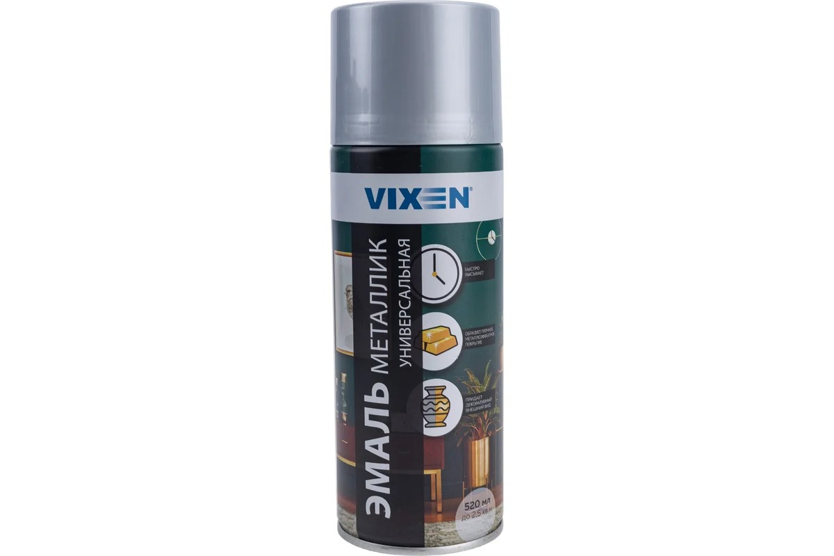 Быстросохнущая акриловая эмаль VIXEN с эффектом «металлик». Предназначена для окрашивания предварительно загрунтованных металлических, деревянных, стеклянных и прочих поверхностей. Образует металлизированное покрытие, придает окрашенному изделию эффектный декоративный внешний вид. Обладает повышенной укрывистостью, благодаря чему экономична при нанесении. Отличается хорошим сцеплением с поверхностью, не отшелушивается и не отслаивается. Обладает хорошей атмосферостойкостью, может использоваться для наружных работ. Легко наносится, не требуя профессиональных навыков, и не стекает при окрашивании вертикальных поверхностей. Внимание! Цвет крышки формирует представление о цвете эмали, но не обеспечивает его 100%-ную передачу при окрашивании.
