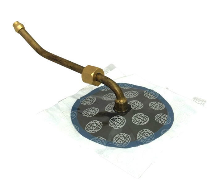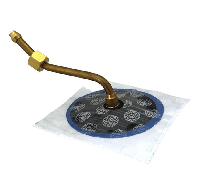 Вентиль ремонтный с подложкой для холодной вулканизации для ремонта, накачки и герметизации камер и шин. Общая длина: 165 мм; Диаметр подложки: ø 95 мм; Материал: Латунь; Угол: 94°.